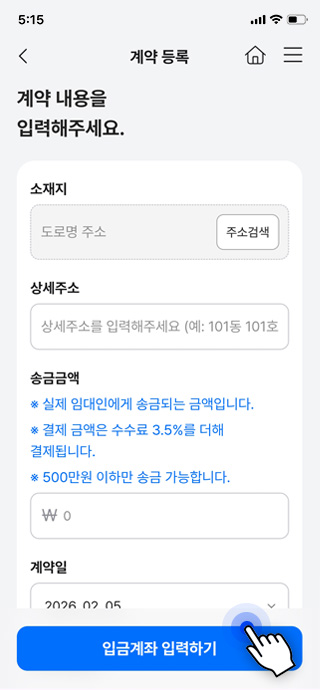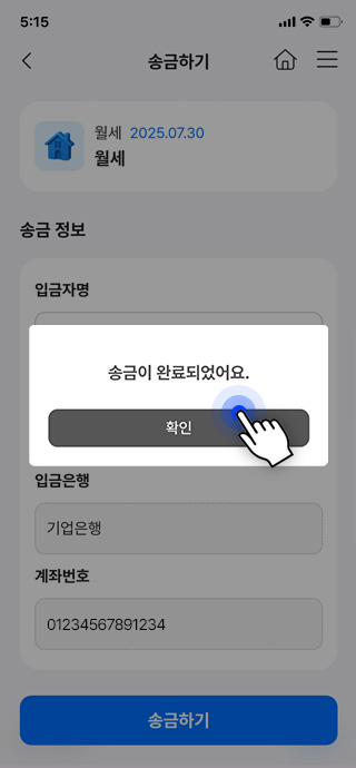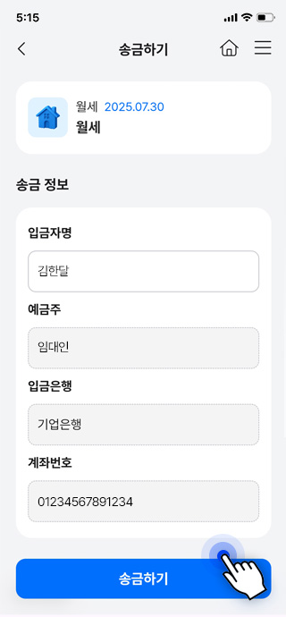 결제 완료 시 자동으로 임대인 계좌에 입금됩니다.