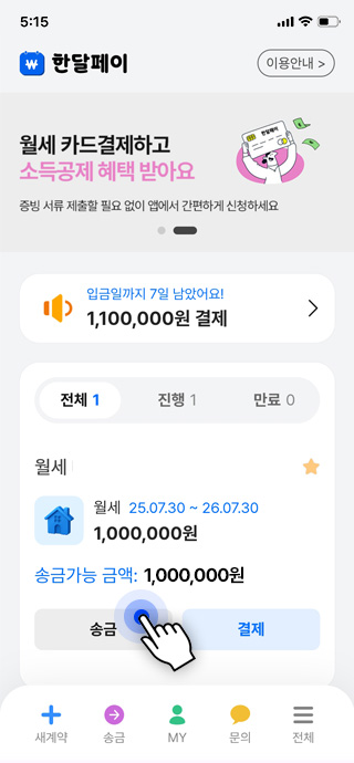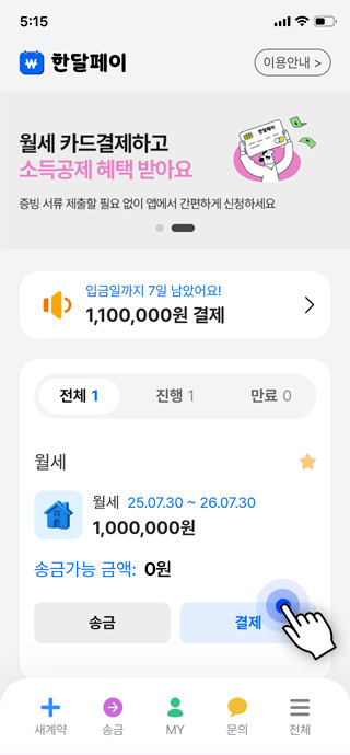 자주 쓰는 간편결제로 임대료도 손쉽게 결제하세요.